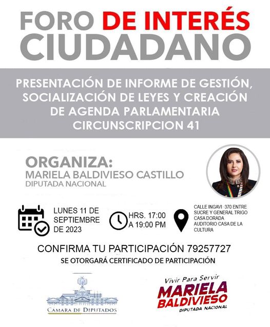 Diputada Mariela Baldivieso realizó el Foro de Interés Ciudadano en Tarija