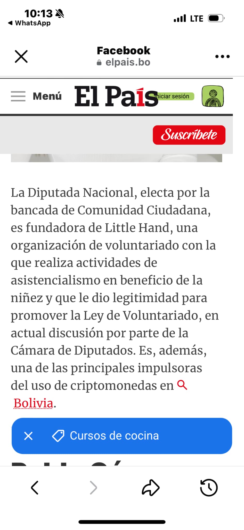En esta nota resalta su perfil como fundadora de una organización de voluntariado (LITTLE HAND), misma fundación que brinda ayuda social a niños y familias de escasos recursos en Tarija; a su vez de promover la Ley de voluntariado. Asimismo su arduo desempeño de implementar el uso de criptomonedas en Bolivia.