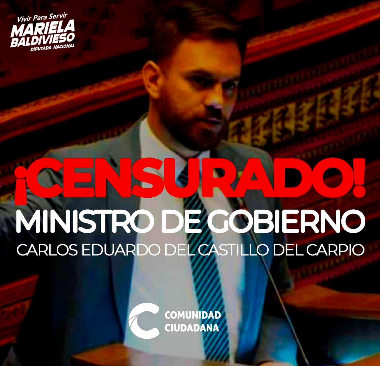 El 27 de junio del presente año, después de más de siete horas de sesión en la Asamblea Legislativa Plurinacional, los diputados y senadores, con una mayoría de dos tercios, votaron a favor de la censura del Ministro de Gobierno, Eduardo del Castillo.