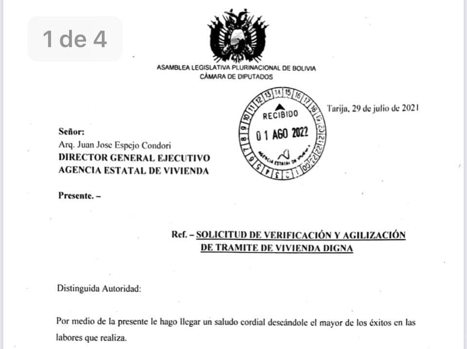 La Legisladora, Mariela Baldivieso informó que a la fecha se tiene 25 proyectos de vivienda digna de EAVIVIENDA, la Agencia Estatal de Vivienda detenido en la comunidad de Alto Ipaguazu en Entre Ríos de la Provincia O´Connor del Departamento de Tarija, el 2 de agosto de 2022, la...