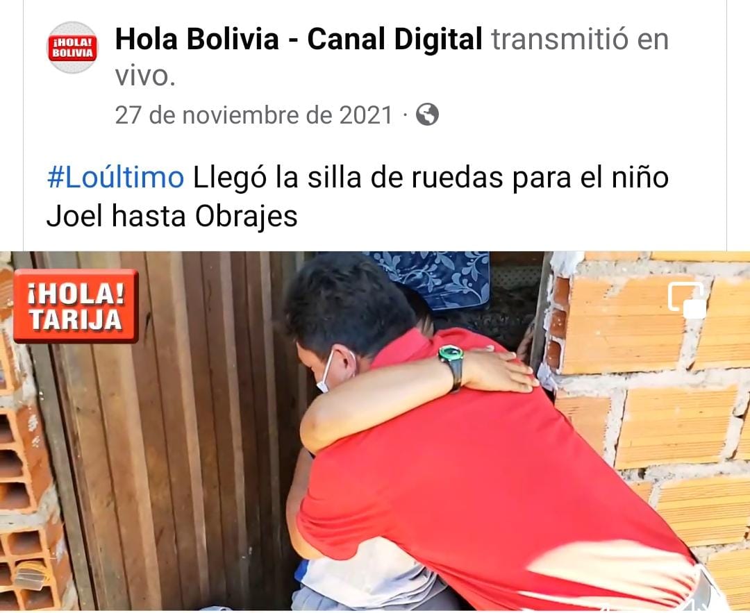 Mariela Baldivieso otorgó una silla de ruedas a niño de escasos recursos que necesitaba con suma urgencia para asistir a su escuelita, la mañana del 27 de noviembre de 2021 en comunidad de Obrajes del departamento de Tarija, la autoridad se hizo presente en compa...