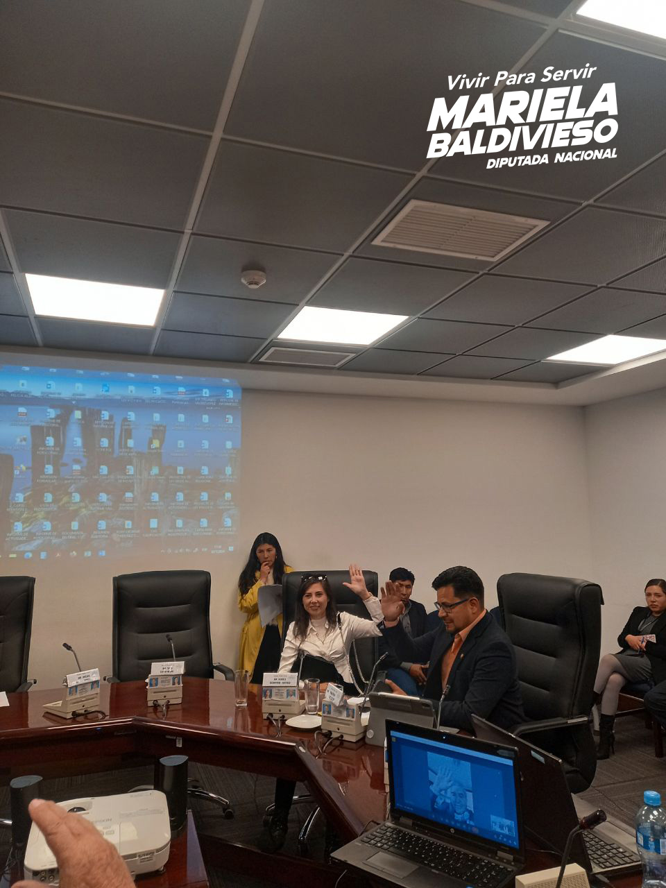 La diputada Mariela Baldivieso Castillo estuvo presente en esta sesión. Y a través de sus redes sociales, compartió que en la comisión de política social N° 81 se contó con la presencia del Ministro de Defensa para la presentación de su informe oral. Además, destacó la aprobación mayoritaria del Proyecto de Ley N° 412, resaltando la importancia de estos avances legislativos para el fortalecimiento institucional y la transparencia en los procesos electorales.