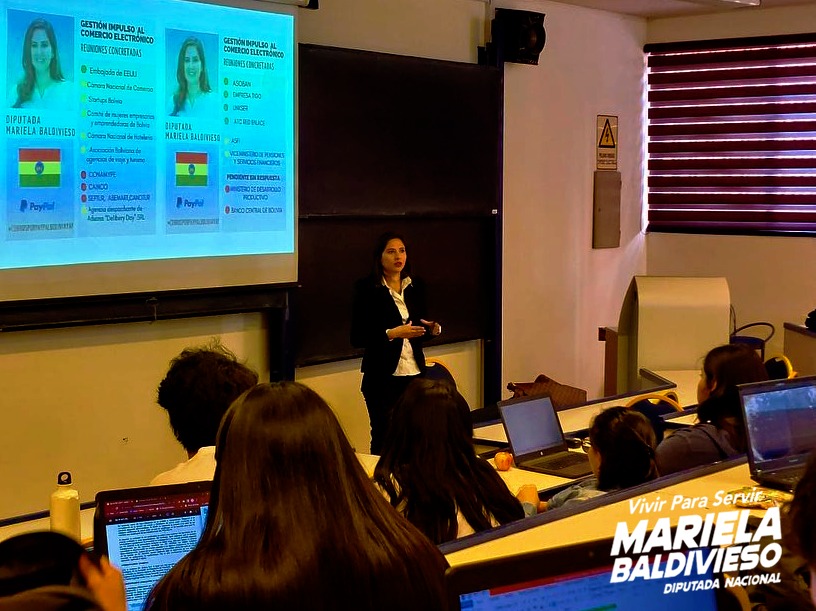 El miércoles 25 de mayo, en horas de la tarde, la Diputada Mariela Baldivieso se dio cita en las instalaciones de la Universidad Católica Boliviana de la ciudad de La Paz, impartiendo una Charla Magistral con los estudiantes de la carrera de Derecho sobre el Comercio Electr&o...