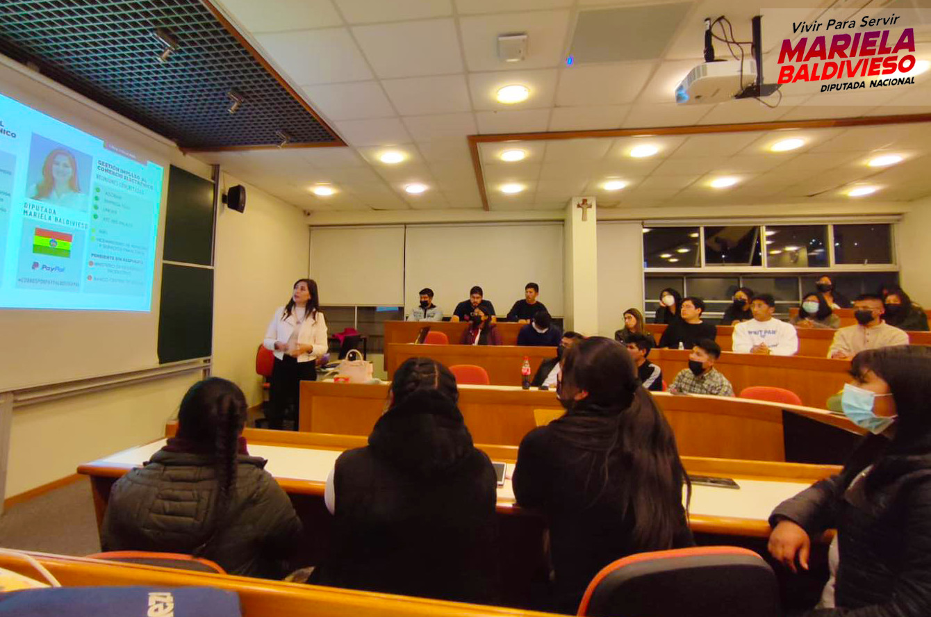 El 12 de abril del presente año, a partir de la hora. 19:45 se llevó a cabo el seminario de Emprendimiento dirigido por la Diputada Mariela Baldivieso, en la Universidad Católica Boliviana, en la ciudad de La Paz.