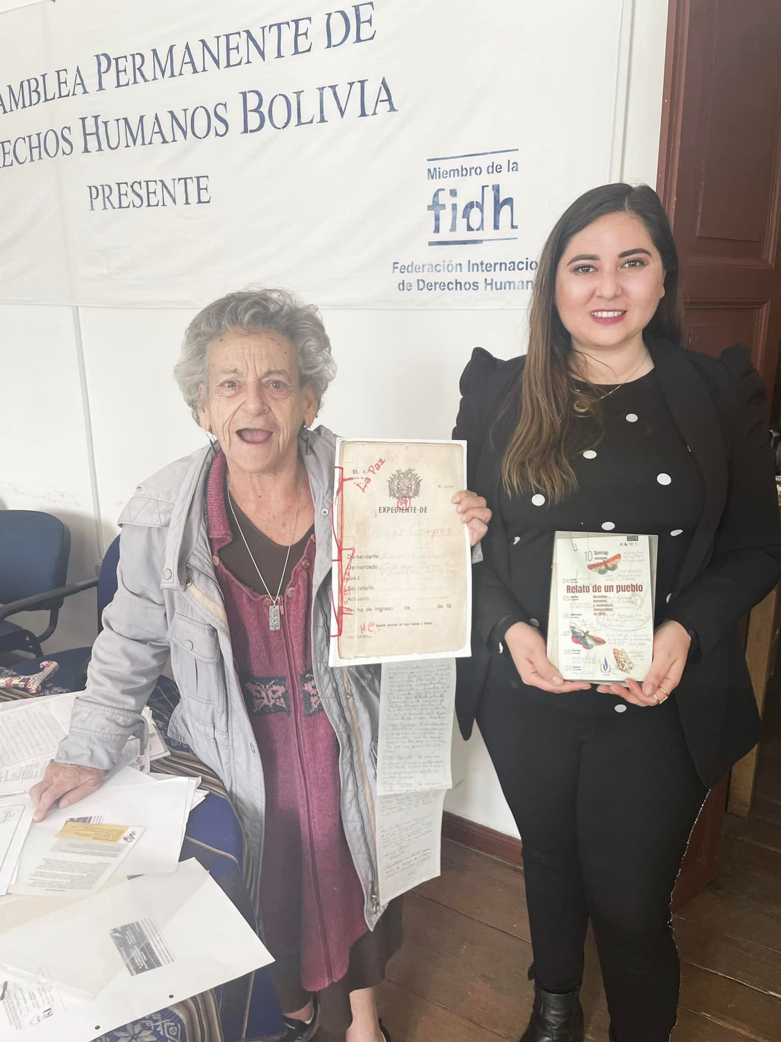 La legisladora de la Cámara de Diputados, Mariela Baldivieso Castillo publicó una foto junto a Amparo Carvajal, defensora de los Derechos Humanos, el 4 de junio de 2022 en su página oficial de Facebook junto a un emotivo texto.