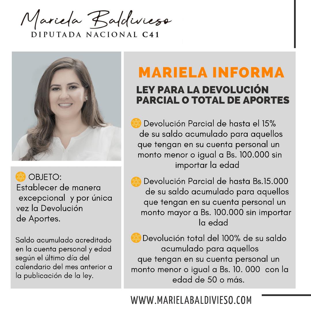 La parlamentaria, Mariela Baldivieso informó que se concretó la reunión con el Ministerio de Economía y Finanzas Públicas, dicha noticia fue posteada en su página oficial el 29 de julio de 2021 indicando lo siguiente: “mis expectativas de est...
