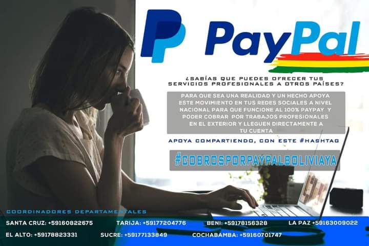 La diputada tarijeña invita a unirse al Movimiento Ciudadanos Nacional Pro Cobros PayPal en Boliviana, el 24 de mayo publico toda la información de cómo y a qué números pueden contactarse para sumarse a la campaña a la que varios departamentos ya se su...
