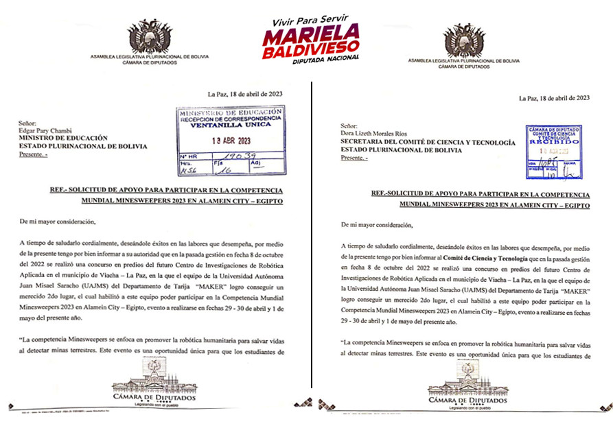 La Diputada Mariela Baldivieso solicitó apoyo para el equipo de estudiantes de Ingeniería Informática de la Facultad de Ciencias y Tecnología de la Universidad Autónoma Juan Misael Saracho (UAJMS) del departamento de Tarija participen y representen en la...